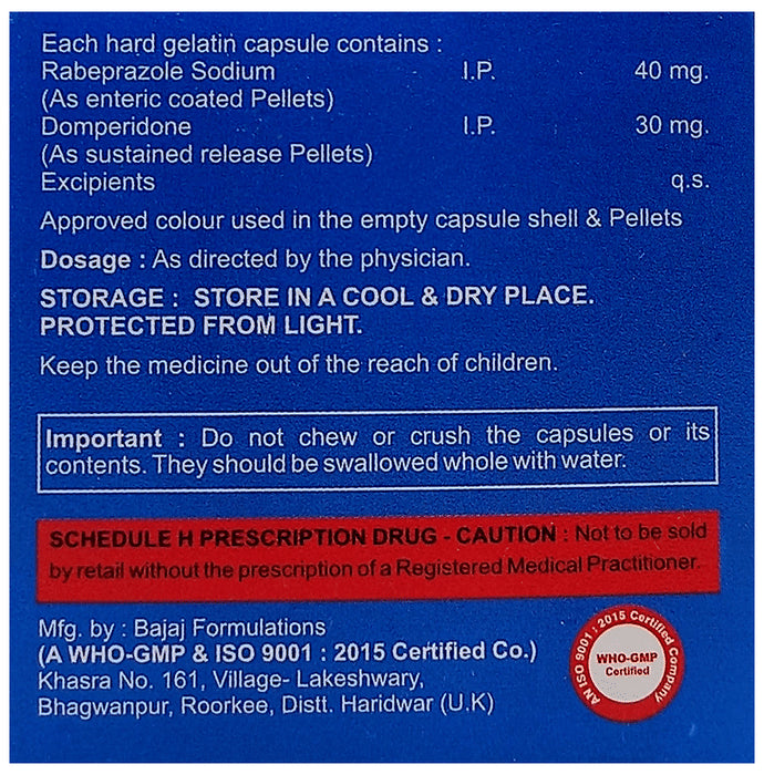 Composition : Domperidone (30mg) + Rabeprazole (40mg)