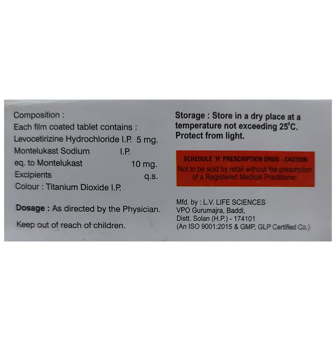 Composition : Levocetirizine (5mg) + Montelukast (10mg)