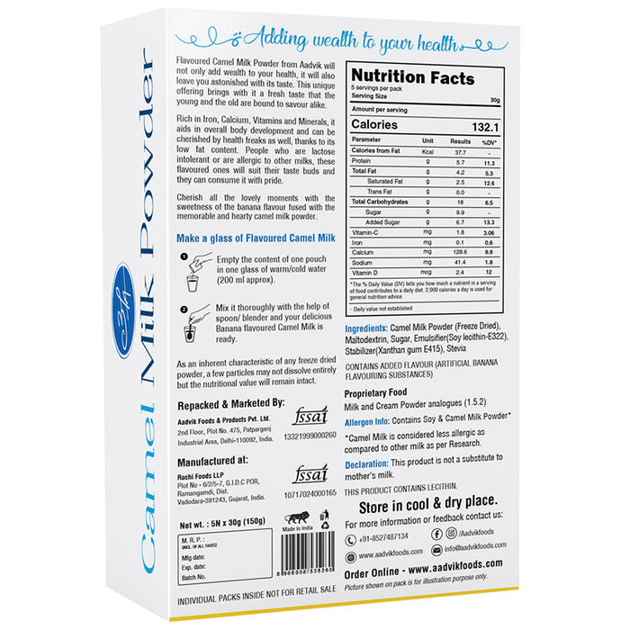 Aadvik Camel Milk Powder Sachet (30gm Each) Banana Freeze Dried