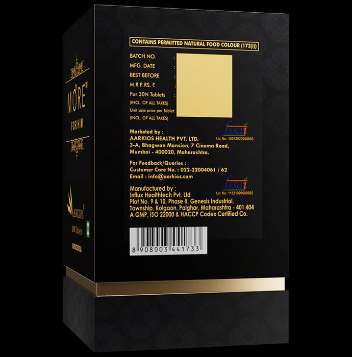 Aarkios More For Him Tablet is specially designed for men's health. It combines eleven powerful aphrodisiacs that are beneficial for overall health and well-being. It protects you from stress and exhaustion. It helps to boost energy levels and stamina.