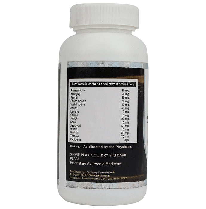 Composition : Ashwagandha|Bhringraj|Jaiphal|Shudh Shilajit|Yashtimadhu|Arjuna|Lawang|Chitrak|Jeerak|Saunf|Shatavari|Amalki|Haritaki|Triphala