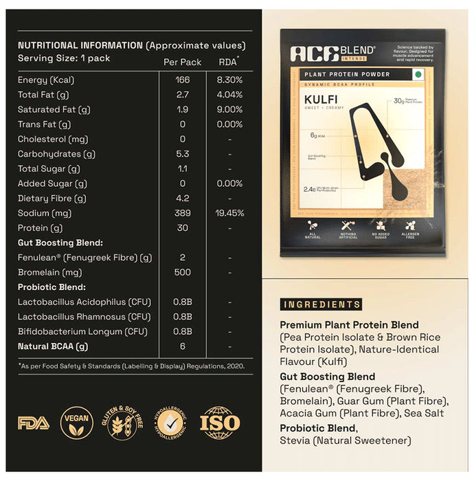 Ace Blend Intense 30g Vegan Plant Protein Powder with BCAA Kulfi