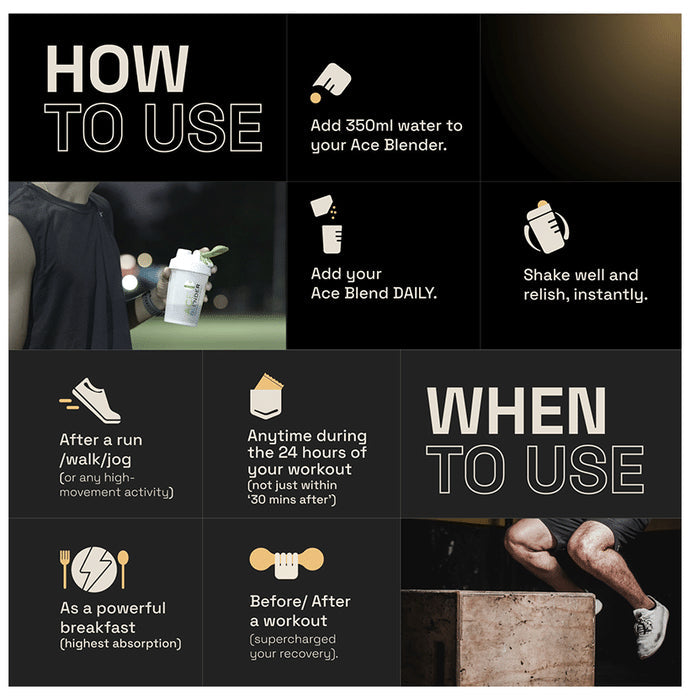 Ace Blend Intense Plant Protein Powder Sachet Sachet Kulfi provides the body with 100 A-grade 30 gm plant-based protein blended with pineapple-based digestive enzymes, soluble and insoluble fibre, and 2.5B CFU of multi-strain pre and probiotics.