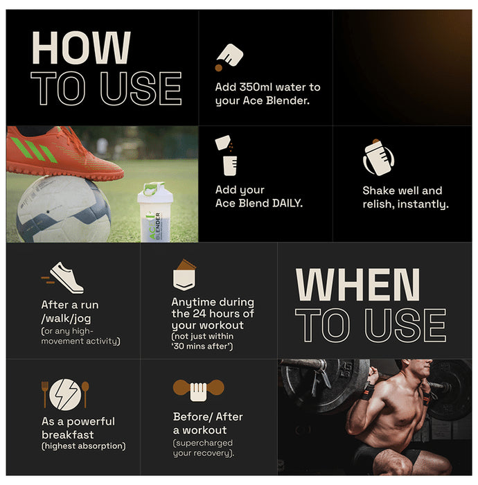 Ace Blend Intense Plant Protein Powder Sachet Sachet Mocha provides the body with 100 A-grade 30 gm plant-based protein blended with pineapple-based digestive enzymes, soluble and insoluble fibre, and 2.5B CFU of multi-strain pre and probiotics.