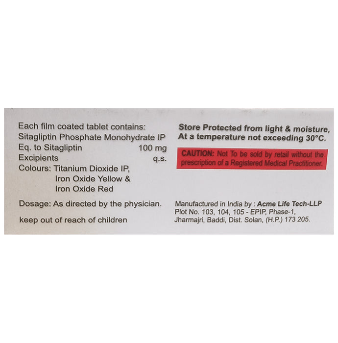 Acosita 100 Tablet is a medicine used to treat type 2 diabetes mellitus. It is used together with a healthy diet and regular exercise to control blood sugar levels. This helps to prevent serious complications of diabetes like kidney damage and blindness. Acosita 100 Tablet is normally prescribed when diet and exercise alone or other medicines do not prove sufficient to control your blood sugar level. Your doctor may prescribe it alone or along with other diabetes medicines. It may be taken on an empty stomach or with a meal. The dose will depend on your condition, and blood sugar levels. Therefore, you should use it as advised by your doctor.You should take it regularly at the same time each day to get the most benefit, and you should not stop unless your doctor recommends it. This medicine is helping you to control your blood sugar levels and prevent serious complications in the future. It is important to stay on the diet and exercise program recommended by your doctor while taking this medicine. Your lifestyle plays a big part in controlling diabetes.The most common side effect of taking this medicine is a headache. This is usually minor and improves with time. Low blood sugar level (hypoglycemia) is a possible side effect if you are also taking other diabetes medicines like insulin or sulfonylurea, so you need to know how to recognize and deal with it. It may also cause upper respiratory tract infections like sore throat, cough, and cold. Contact your doctor if the side effects worry you or if they do not go away.Before taking this medicine, let your doctor know if you have ever had kidney disease, heart or pancreas problems, or if you drink a lot of alcohol. Pregnant or breastfeeding women should also consult their doctor before taking it. Some other medicines you are taking may interfere with this medicine's working. So, make sure your doctor knows about all the other medicines you are using. Limit your alcohol intake while taking this medicine because it can increase your risk of developing low blood sugar levels. You may need regular tests such as kidney function and blood glucose levels to check that the medicine is working properly.