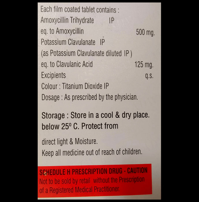 Composition : Amoxycillin (500mg) + Clavulanic Acid (125mg)