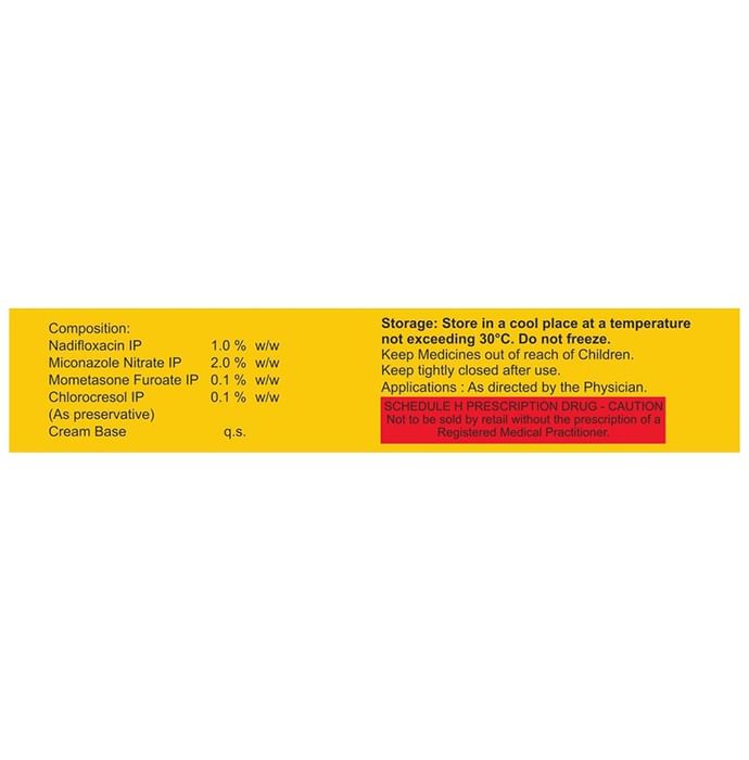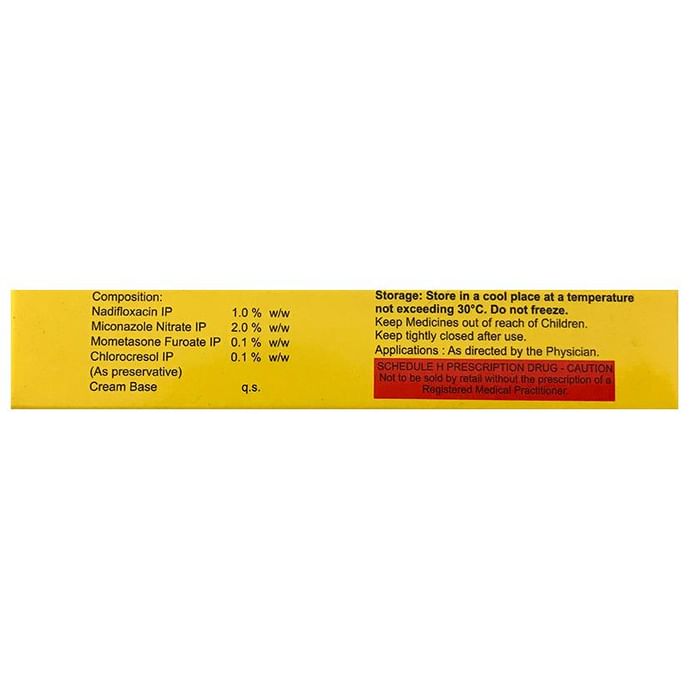 Composition : Miconazole (2% w/w) + Mometasone (0.1% w/w) + Nadifloxacin (1% w/w)