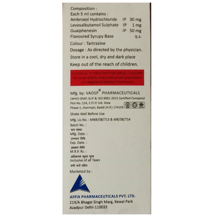 Composition : Levosalbutamol (1mg/5ml) + Ambroxol (30mg/5ml) + Guaifenesin (50mg/5ml)