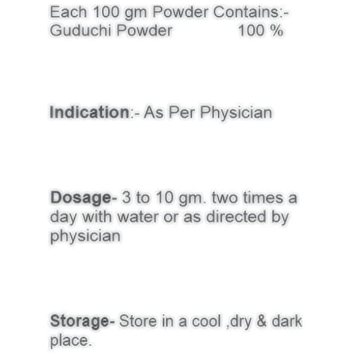 Afflatus Pure Ayurvedic Giloy Churn (Guduchi Powder) for Immunity Wellness contains giloy (Tinospora cordifolia) Guduchi which is considered as "Amrit" (meaning Divine Nectar) in Ayurveda. It is also known as “heart-leaved moonseed” due to the characteristic shape of its leaves. Guduchi supports and helps to boost the immune system.