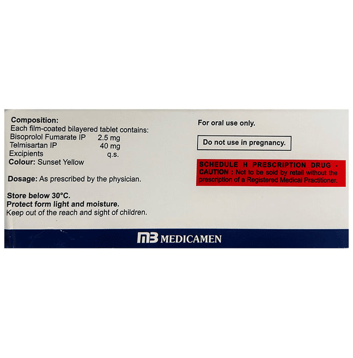 Composition : Bisoprolol (2.5mg) + Telmisartan (40mg)
