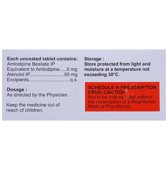 Composition : Amlodipine (5mg) + Atenolol (50mg)