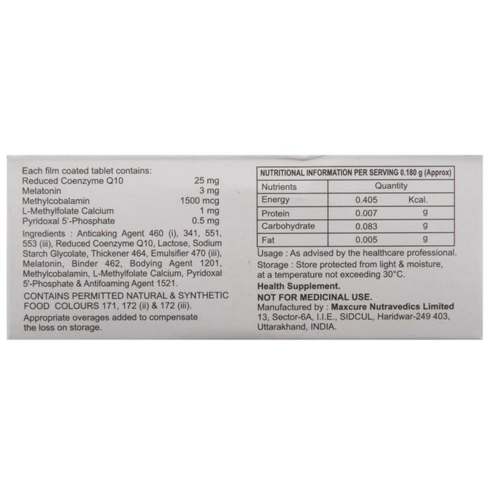 Composition : Coenzyme q10,Melatonin,L-Methyl folate,Methylcobalamin,Pyridoxal 5-phosphate