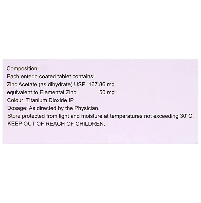 Composition : Zinc Acetate (as dihydrate) USP equivalent to Elemental Zinc