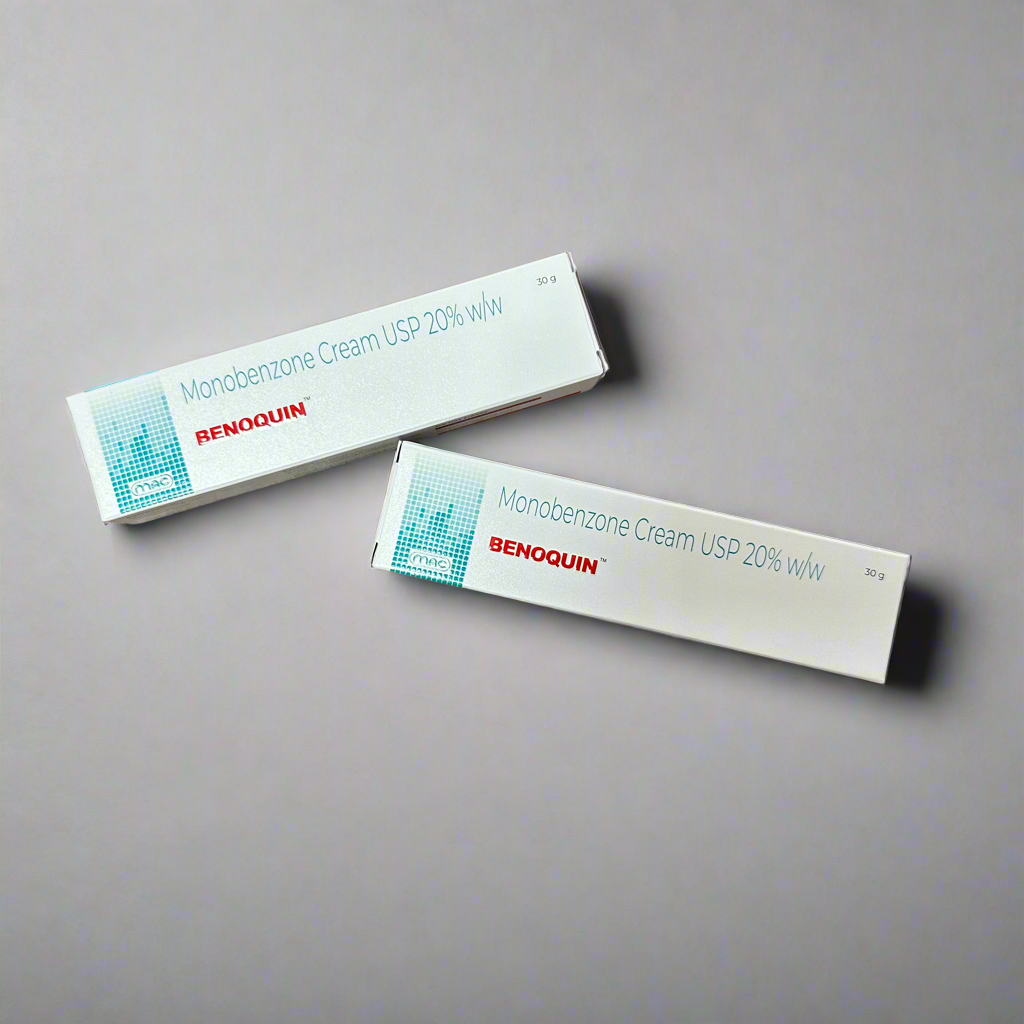 Benoquin Cream is used for depigmentation. It is used to permanently lighten the skin in people with extensive vitiligo. It works by increasing the elimination of melanin from skin cells.