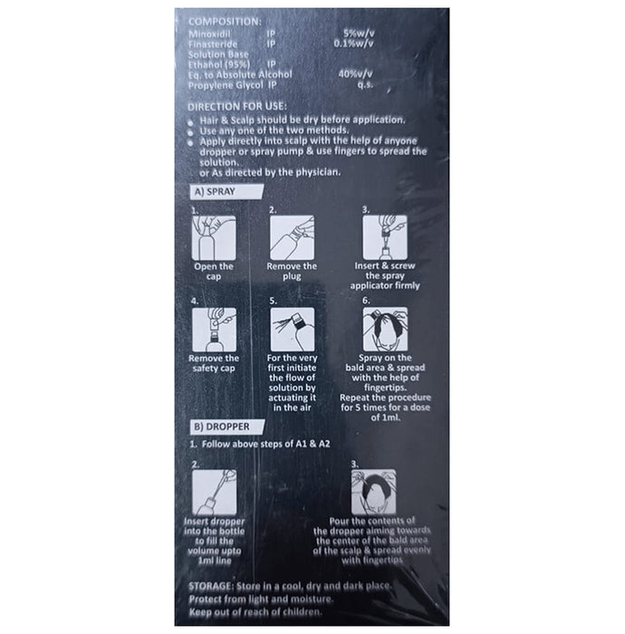 Composition : Minoxidil (5% w/v) + Finasteride (0.1% w/v)