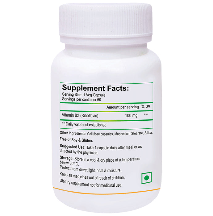 Biotrex Vitamin B2 100mg for Energy, Eye Health, Hair, Skin & Antioxidant Support | Capsule