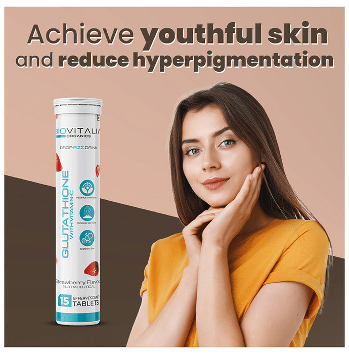 Biovitalia Organics Glutathione with Vitamin-C Effervescent Tablet Strawberry