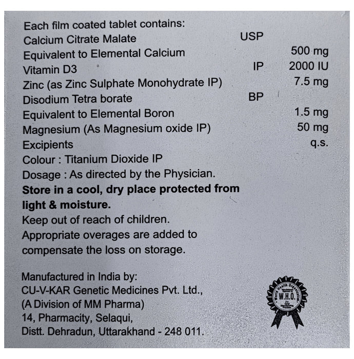Composition : Calcium citrate malate,Vitamin D3,Zinc,Magnesium,Boron