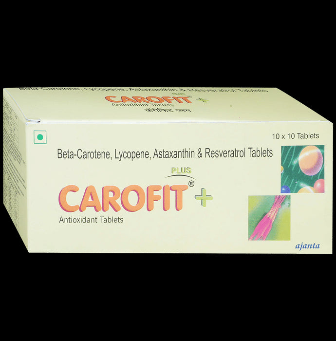 Carofit Plus Tablet is a nutritional supplement containing antioxidants like beta-carotene, lycopene, astaxanthin, and resveratrol, which can help eliminate damage-causing free radicals. These antioxidants protect the cells from damage and aid in various bodily functions.