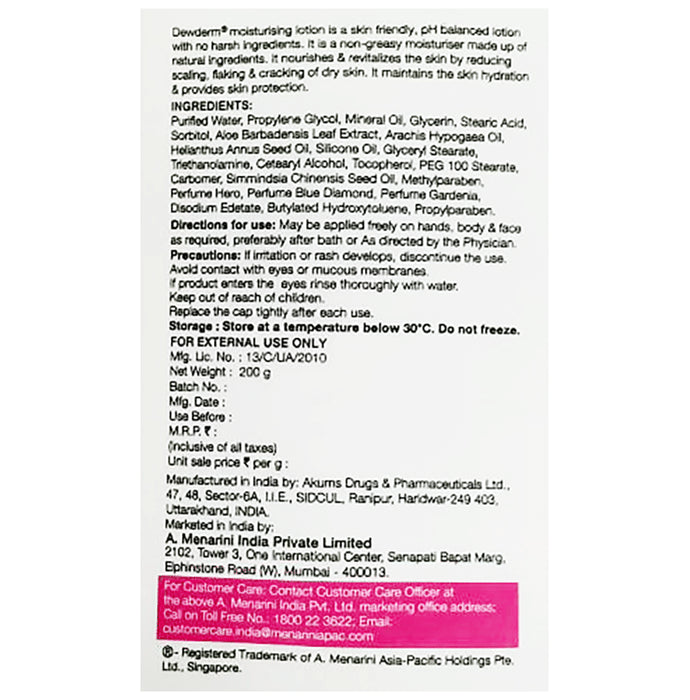 Dewderm Moisturising Lotion with Vitamin E, Aloe Vera & Jojoba Oil | Skin-Friendly & pH-Balanced