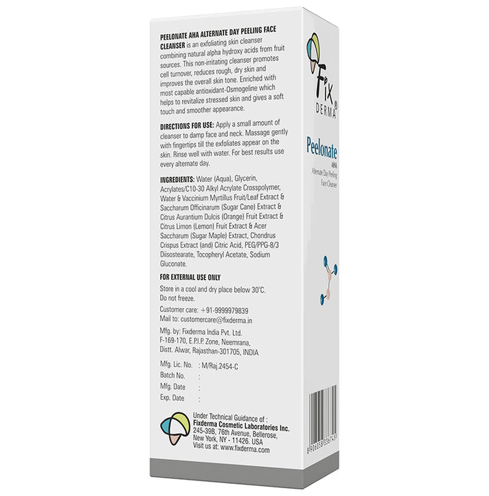Fix Derma Peelonate AHA Face Cleanser assists in the removal of dead skin cells while exfoliating the skin. It has red algae extract in it, which helps to minimise hyperpigmentation, fine lines and wrinkles, and acne. It also contains multifruit extract, which helps to hydrate the skin and brighten the skin tone.