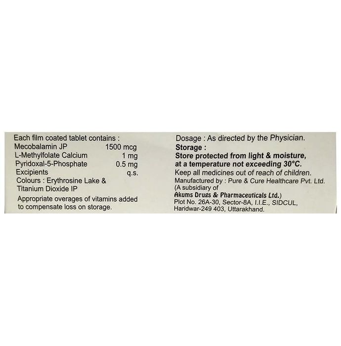 Composition : Mecobalamin JP,L-Methylfolate Calcium,Pyridoxal-5-Phosphate
