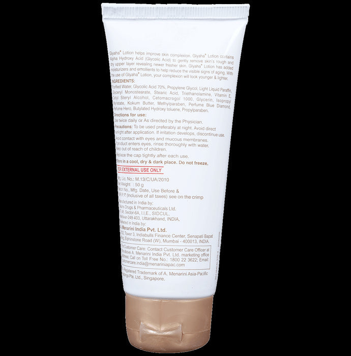 Glyaha Lotion is a lotion that contains glycolic acid as the active ingredient. Glyaha Lotion is designed to help with a range of skin conditions, including acne, hyperpigmentation, and photodamaged skin. Glycolic acid is a type of alpha-hydroxy acid (AHA) that has skin-exfoliating properties, which means it can remove dead skin cells and promote new cell growth. Glyaha Lotion is commonly used by individuals looking for an anti-ageing treatment or a way to improve the appearance of their skin.