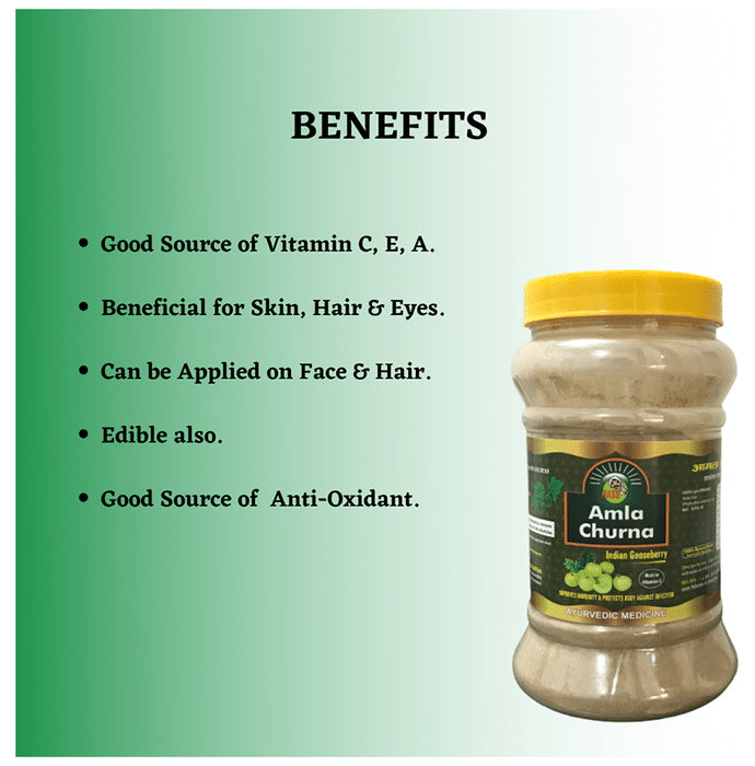 HASS Amla Churna is great for boosting immunity and helps to fight off infections. It has been beneficial for the skin, hair and overall health. Amla is a rich source of vitamin C and is filled with antioxidants. Amla is known to be beneficial in controlling diabetes and helping manage blood sugar levels, and it has immunity-boosting properties. Amla benefits by improving the nervous system, memory and brain health. Amla increases the no of times you urinate, thus eliminating unwanted toxins.Key Ingredients of Dabur Amla Churna:Amla (Emblica Officinalis)Key Benefits of Dabur Amla Churna:Dabur Amla Churna benefits by keeping blood sugar levels in control, especially in diabetic patientsAmla helps to keep the hair shiny, soft and full of texture and further helps the hair to intensify from the rootsIndian Gooseberry makes the immune system and nervous systems strongerAmla reduces the number of free radicals which are associated with ageingIt is suitable for hair growth, hair care, and skincareAmla helps to enrich hair growth and pigmentationDabur Amla churna flushes out all the toxins that can cause diarrhoea and dysenteryIt aids in digestion, improves the loss of appetite and may help to gain weightAmla deals with dry scalp conditions and acts as a good conditioner for the hairAmla helps to lower cholesterol level and blood pressure levelsDirections For Use:Take 3-6 g (1-2 teaspoons) with water. Consume the drinkOr use as directed by the physicianSafety Information and Precautions:Read the label carefully before useKeep out of reach of the childrenStore in a cool, dry placeDo not exceed the recommended dosage