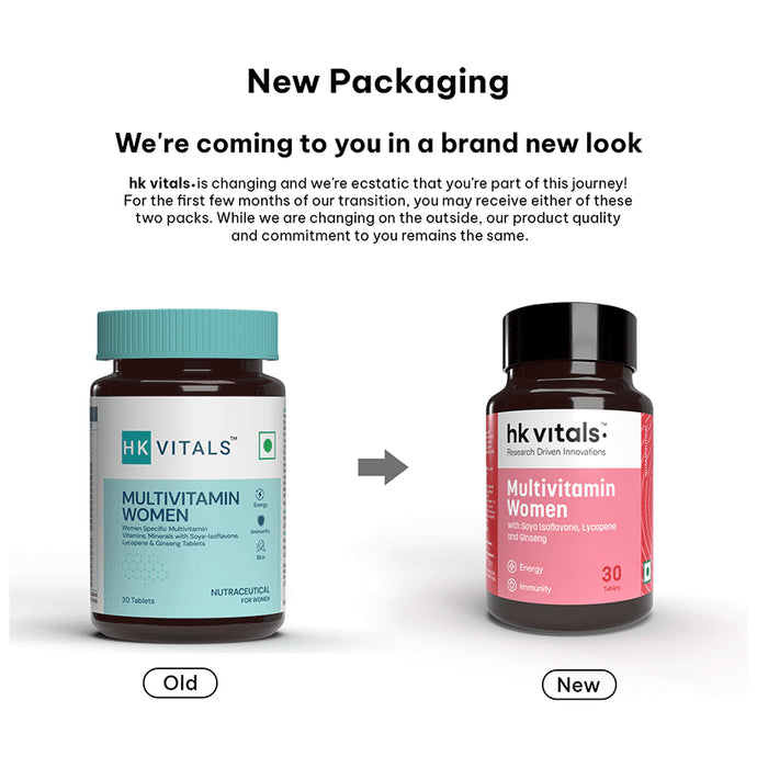 HealthKart HK Vitals Multivitamin Women for Energy, Joint, Skin, Hair & Immunity Tablet is a comprehensive multivitamin with the goodness of Ginseng Extract, Ginkgo Biloba, and multimineral to meet the nutrient requirements of the body and support overall health. In addition, scientific blends of multivitamins and minerals can help in energy production, and improve immunity, skin health, and bone and joint health. It has Ginseng Extract which has been proven to reduce stress and improve mood and cognitive function. Potent antioxidants like Zinc and Vitamin C support the immune system and reduce free radical damage.