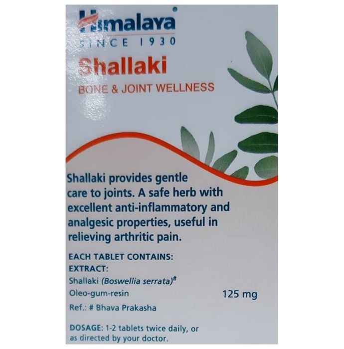 Himalaya Wellness Pure Herbs Shallaki Tablet is a herbal formulation with shallaki that provides gentle care to the joints. It has anti-inflammatory and analgesic properties, which can help relieve arthritic pain. It supports the prevention of excessive joint wear and tear by inhibiting Glycosaminoglycans degradation, the structural element of joint cartilage, supporting normal lubrication and shock absorbing, essential for proper joint structure and function.