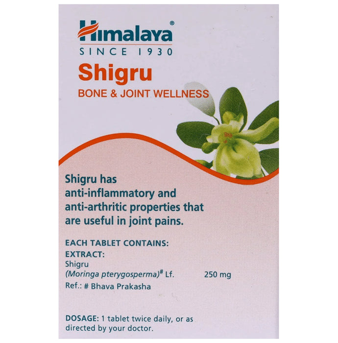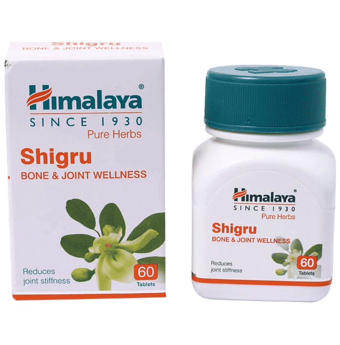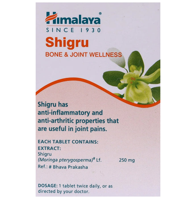 Himalaya Wellness Shigru Bone and Joint Wellness Tablet Himalaya Wellness Pure Herbs Shigru Bone and Joint Wellness Tablet helps suppress joint inflammation and pain by targeting key enzymes that facilitate the release of pro-inflammatory chemicals in the joints. The antioxidant phytoconstituents present in shigru alleviate gouty inflammation of the joint by inhibiting the key enzyme that is involved in excessive uric acid production. Due to its high nutritional content, shigru nourishes body tissues, especially bones and joints.