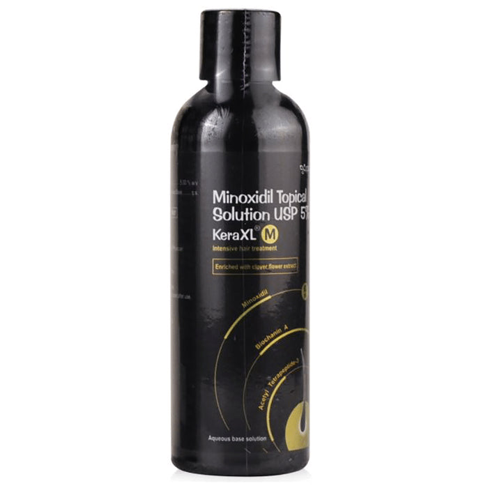 Kera XL M Solution is a potassium channel opener. Its vasodilation action expands the blood vessels. Therefore, when it is applied to the scalp, it helps to increase blood flow. This increased blood flow provides more nutrition and oxygen to the hair follicles, which prevents hair cell death and also enhances new hair growth. This is how it works to treat your alopecia (hair loss).