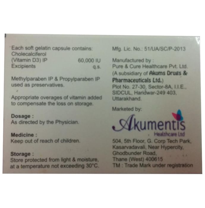 Kingrise-D3 60K Capsule is a vital supplement containing Cholecalciferol 60,000 IU (International units). Cholecalciferol, also known as Vitamin D3, is a fat-soluble vitamin crucial for the body's absorption of calcium and phosphorus from food and supplements. In situations where sunlight exposure is limited or preventive measures like sunscreen and protective clothing are in use, Kingrise D3 becomes essential to prevent Vitamin D3 deficiency. This capsule is designed to support bone and teeth health, reduce fatigue, alleviate muscular pains, boost immunity, and enhance resistance against infections.