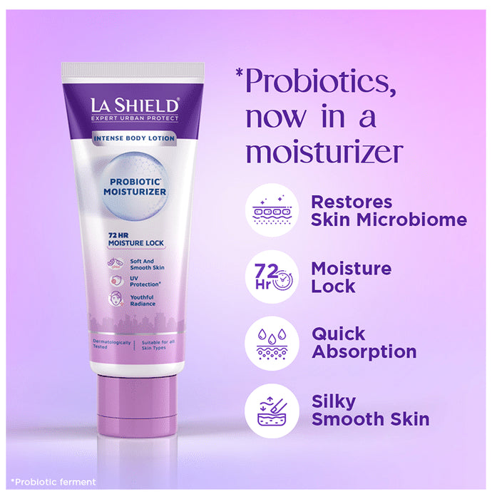 La Shield Probiotic Moisturizer Intense Body Lotion is designed to protec the skin from urban aggressors such as pollution, dust, and UV radiation. It is a probiotic moisturiser with Intense hydration.
