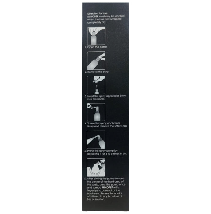 Minopep 5% Solution is a potassium channel opener. Its vasodilation action expands the blood vessels. Therefore, when it is applied to the scalp, it helps to increase blood flow. This increased blood flow provides more nutrition and oxygen to the hair follicles, which prevents hair cell death and also enhances new hair growth. This is how it works to treat your alopecia (hair loss).