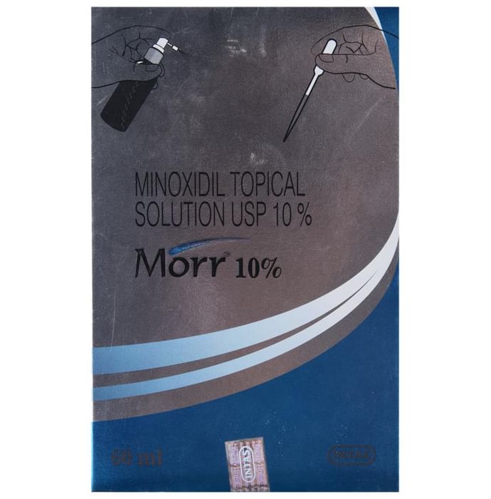 Morr 10% Solution is a potassium channel opener. Its vasodilation action expands the blood vessels. Therefore, when it is applied to the scalp, it helps to increase blood flow. This increased blood flow provides more nutrition and oxygen to the hair follicles, which prevents hair cell death and also enhances new hair growth. This is how it works to treat your alopecia (hair loss).