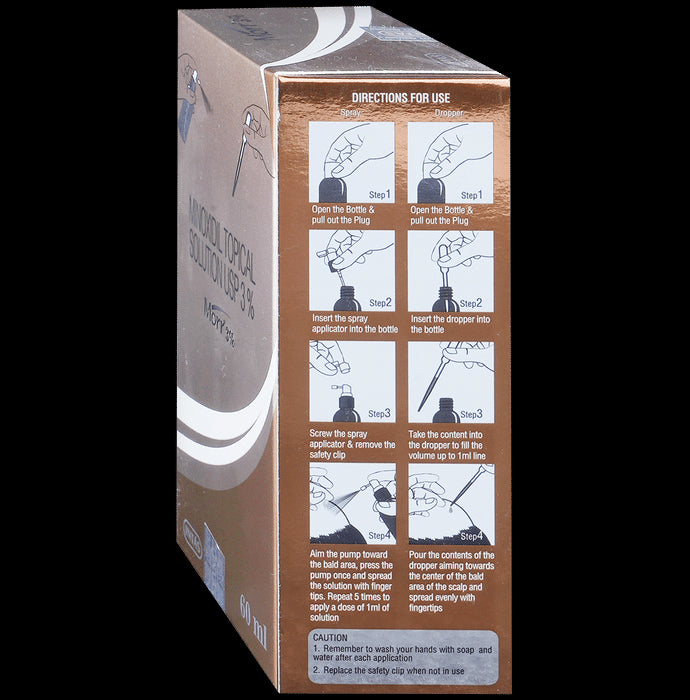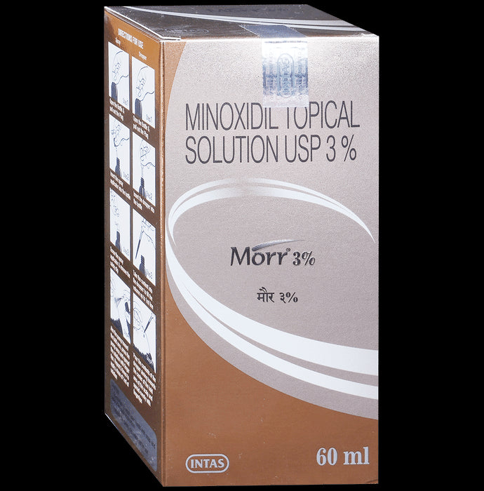 Morr 3% Solution is a potassium channel opener. Its vasodilation action expands the blood vessels. Therefore, when it is applied to the scalp, it helps to increase blood flow. This increased blood flow provides more nutrition and oxygen to the hair follicles, which prevents hair cell death and also enhances new hair growth. This is how it works to treat your alopecia (hair loss).