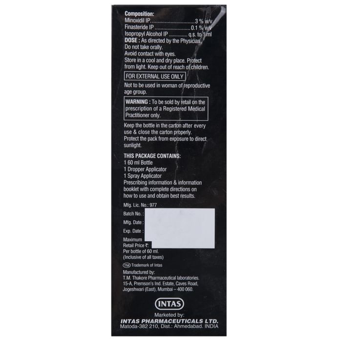 Composition : Minoxidil (3% w/v) + Finasteride (0.1% w/v)