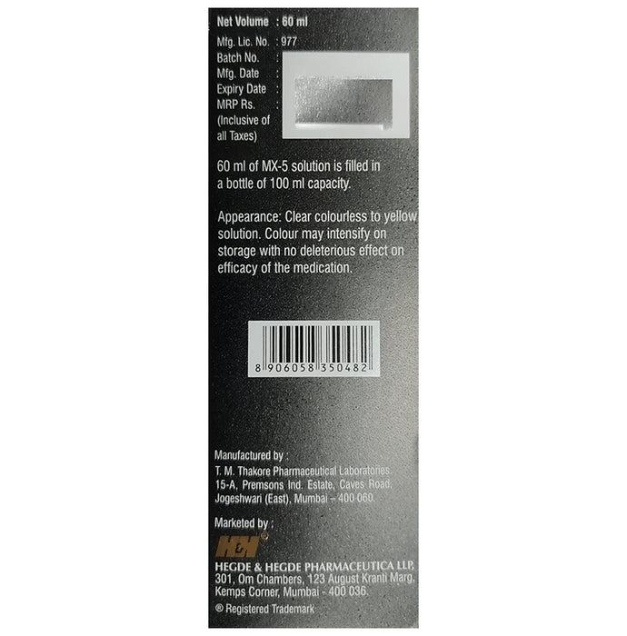 MX 5 Topical Solution is a potassium channel opener. Its vasodilation action expands the blood vessels. Therefore, when it is applied to the scalp, it helps to increase blood flow. This increased blood flow provides more nutrition and oxygen to the hair follicles, which prevents hair cell death and also enhances new hair growth. This is how it works to treat your alopecia (hair loss).