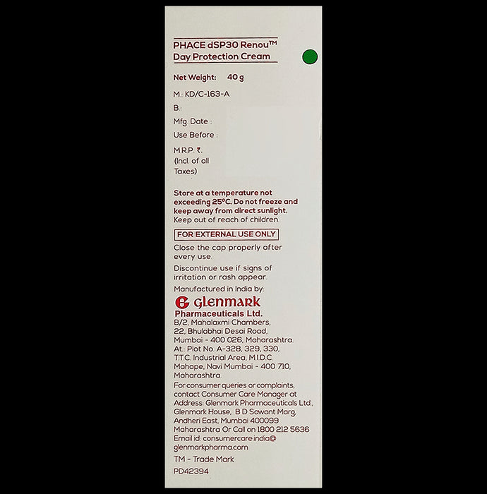 Phace dSP30 Renou Day Cream Sunblock is a formulation with SPF 30 that protects against the damaging UVA and UVB rays that cause damage to the skin tissue. This sunscreen protects your skin from sunburn while also diminishing the appearance of sun damage, discolourations and dark spots. It also helps to prevent wrinkles and drooping skin. The ingredients help soothe your skin, prevent premature ageing and brighten it. It also aids in the maintenance of skin tone resulting in the appearance of nourished and even-toned skin