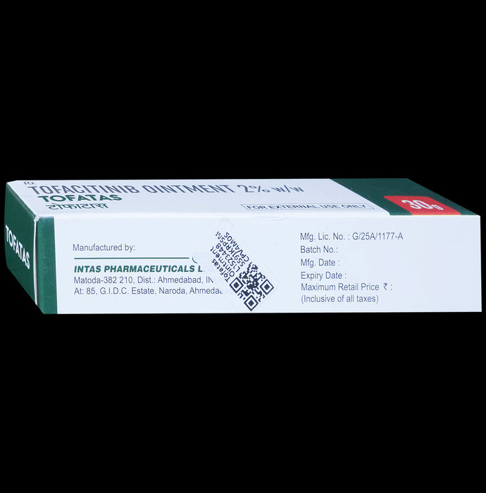 Tofatas Ointment suppresses overactive immune system by inhibiting certain enzymes called Janus kinases (JAKs). Thus, Tofatas Ointment blocks the production of pro-inflammatory substances (including cytokines) that contribute to the development of inflammation and other symptoms of atopic dermatitis. When used for androgenetic alopecia, Tofatas Ointment prevents destruction of hair follicles by overactive immune system. Applying Tofatas Ointment helps in hair regrowth in areas affected by androgenetic alopecia.